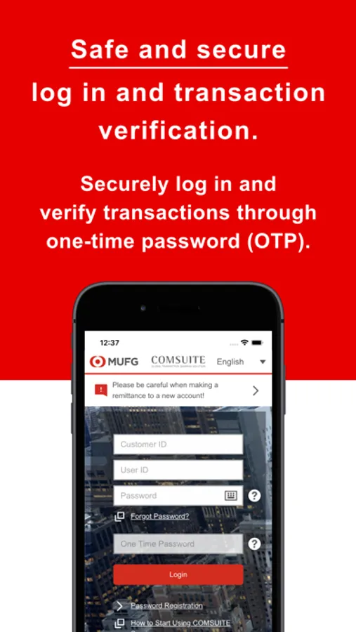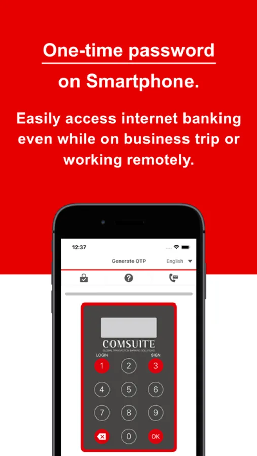 MUFG Bank's One-time-password (OTP) application for global internet banking service “COMSUITE”.