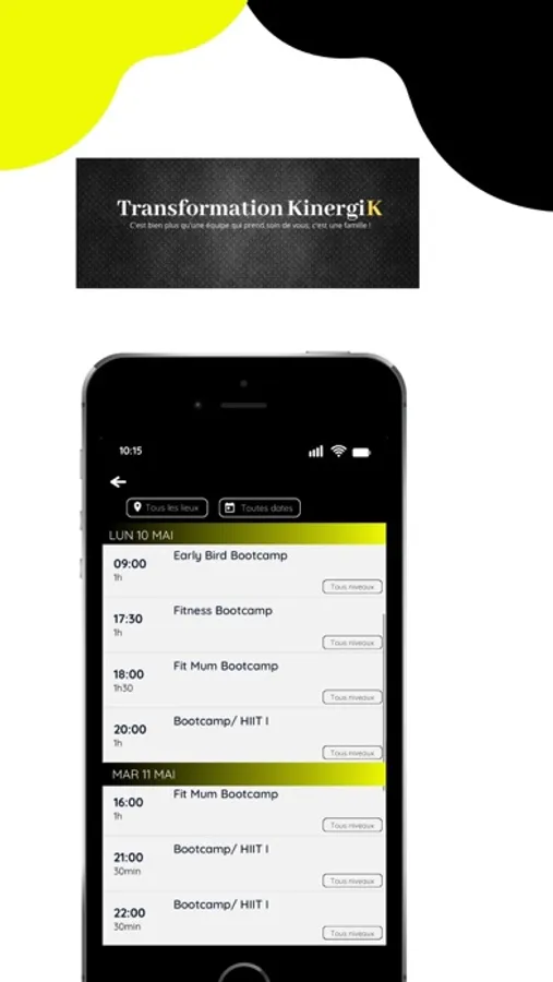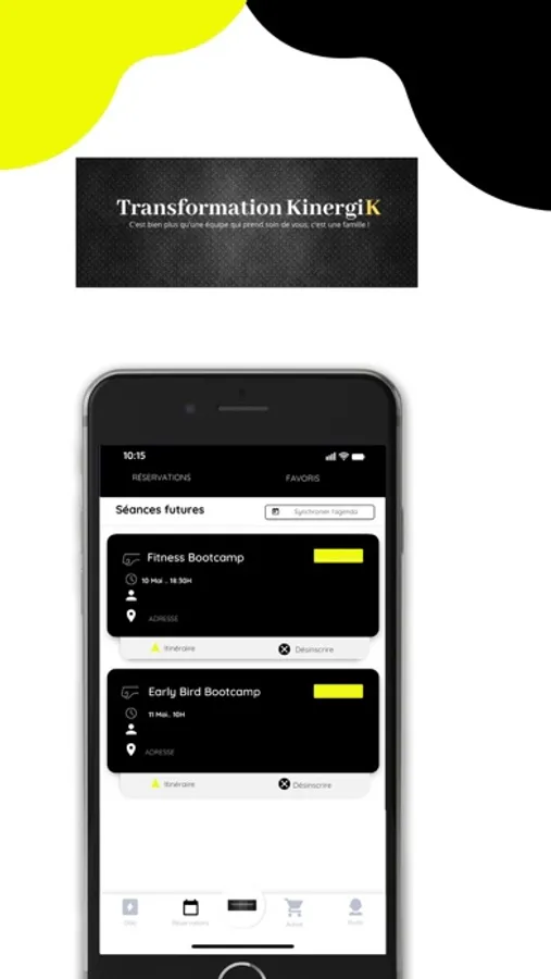 Application pour prise de rendez-vous ainsi que les achats de séances et suppléments chez Transformation Kinergik.