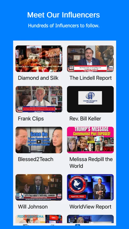 Featured: Here is where you can view an Influencers channel and decide if you want to add them to your Home feed. We have hundreds to choose from already and are constantly adding more