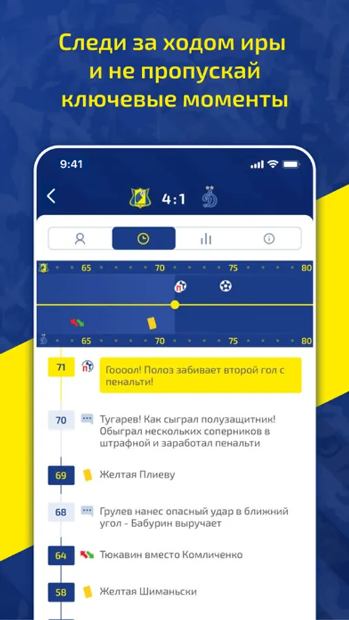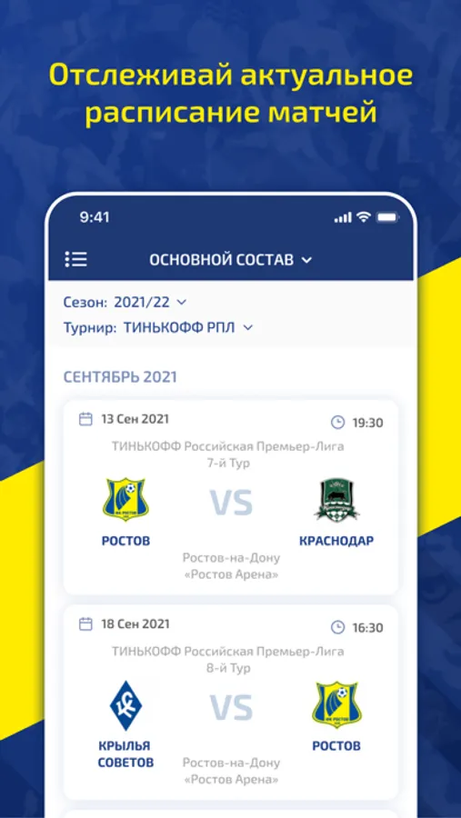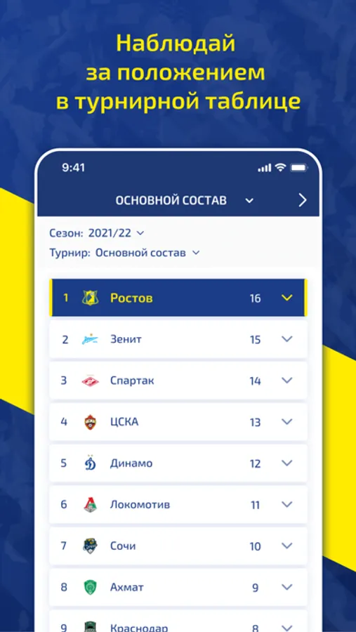 - Просмотр составов команд с актуальной статистикой и информацией об игроках;