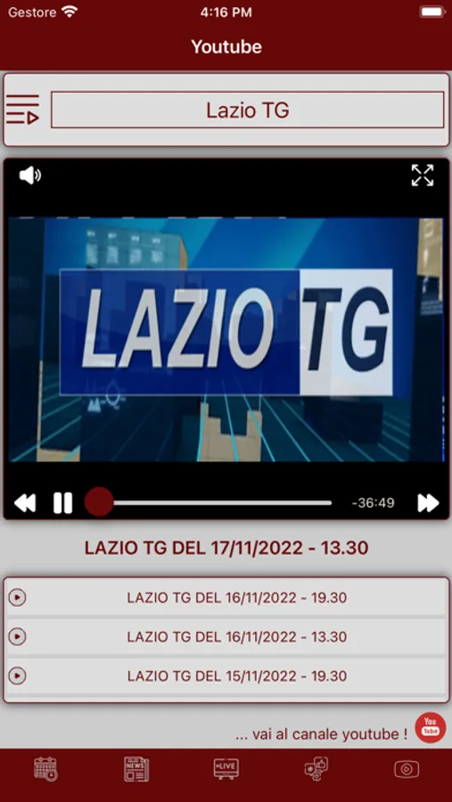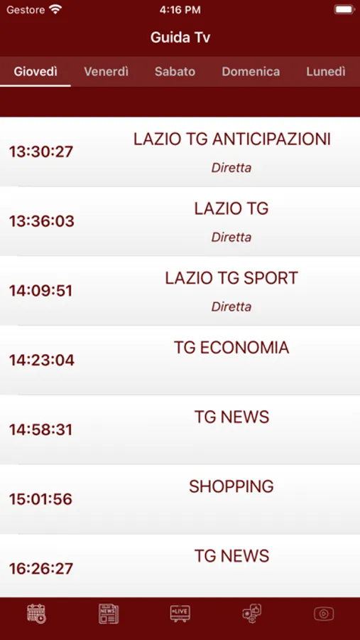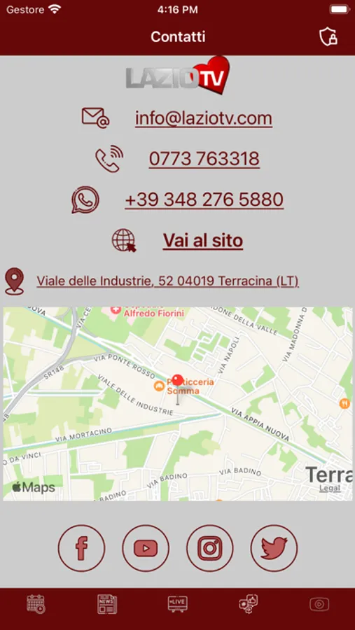 Streaming live della diretta televisiva del canale "Lazio Tv" e possibilità di scoprire il palinsesto settimanale.