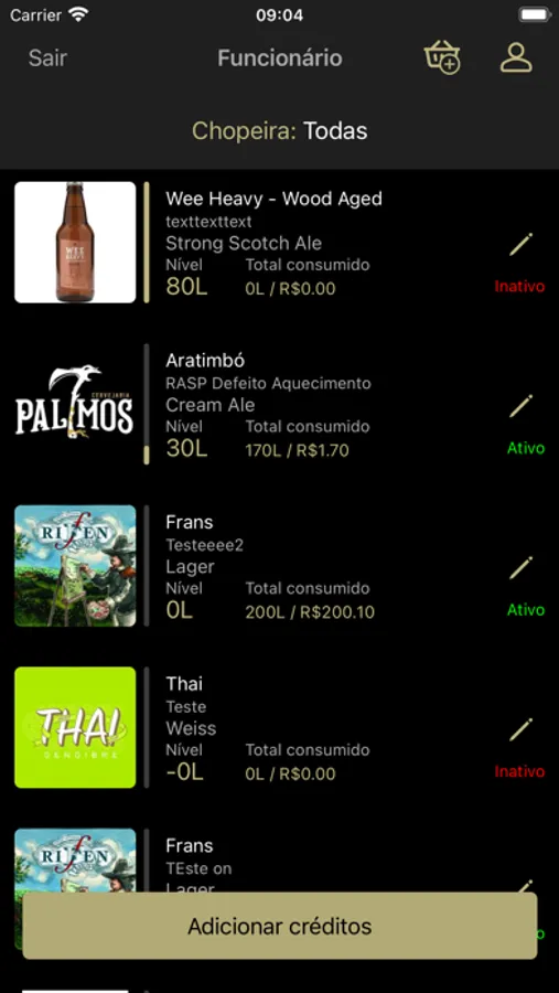 - Adição de créditos.