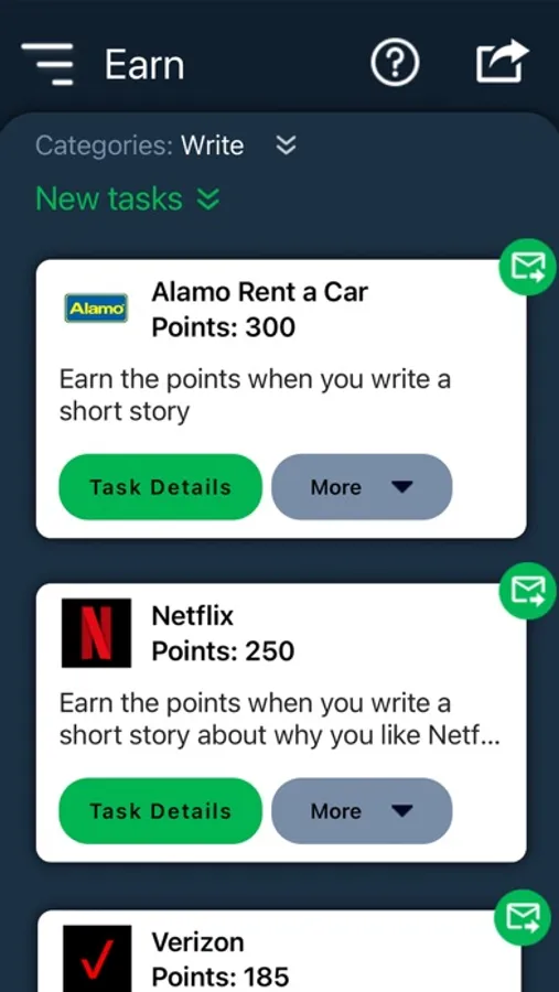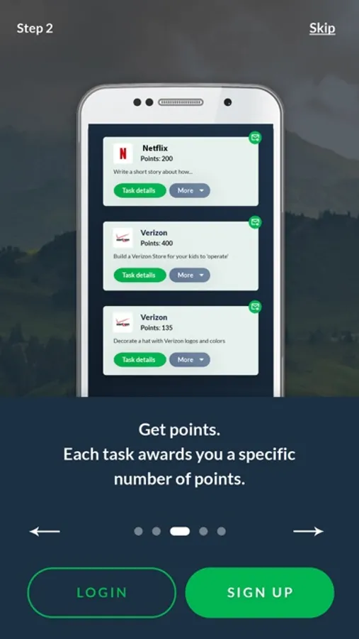 The app awards points when you complete real-world tasks. Purpose works with many service providers ranging from big brands to local businesses. Those service add real-world tasks to Purpose and Purpose gives you points when you accomplish them. For example, Purpose works with Verizon. One of the tasks on Purpose is to create a pair of Verizon-branded glasses. When you complete the task and submits it to Purpose for review, you earn the points once the task is approved.