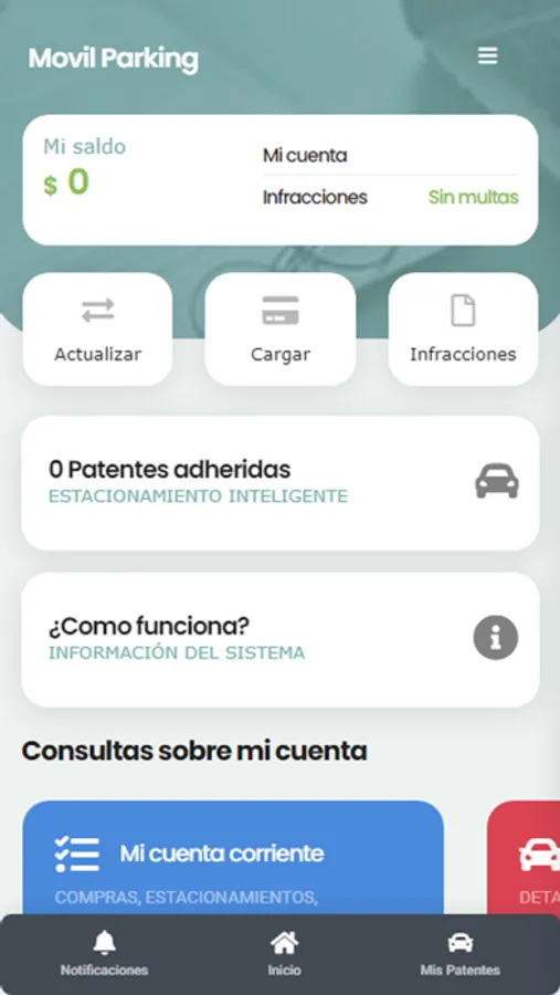 Aplicación para todas las consultas y gestiones online de Estacionamiento Inteligente.