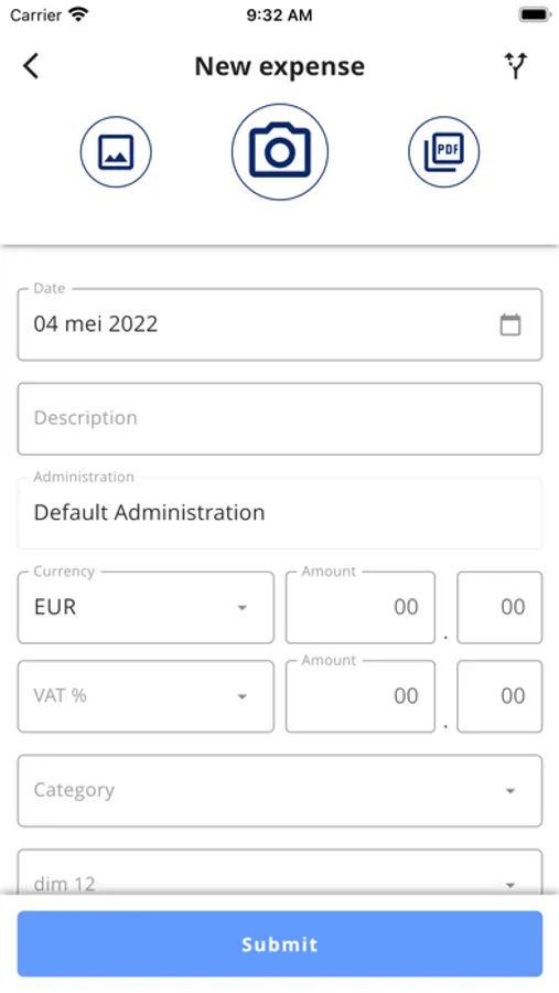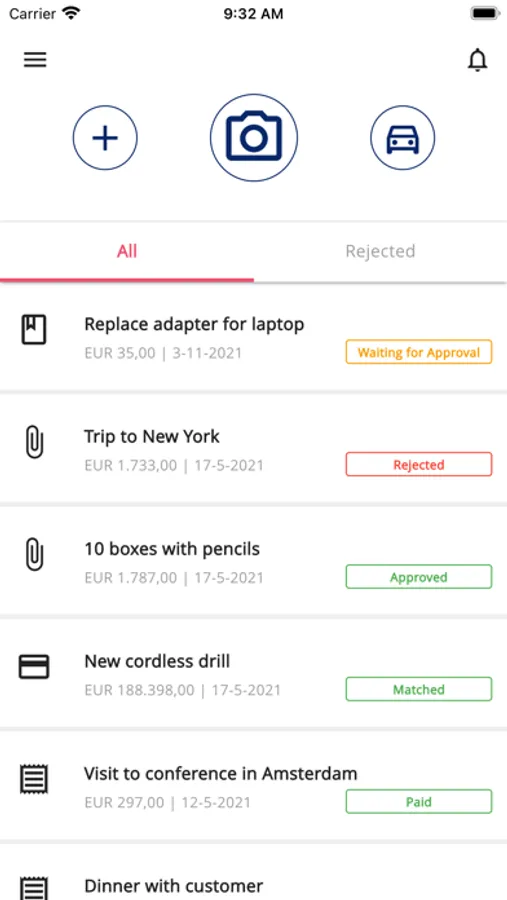 Our expense app is a mobile app for employee expenses. Just take a photo of the receipt with your smartphone and add it to the entered expense. The amount and date will be automatically recognized from the receipt. This expense is then sent to your workflow application, for example Easy Invoice or Basware, and processed as an invoice.