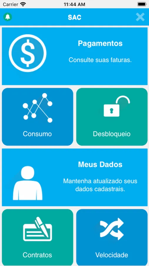 Aplicativo para acessar o serviço de atendimento ao consumidor da Brasul Networks.