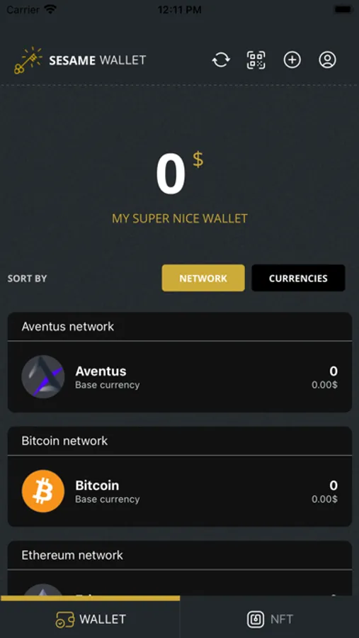 Sezame Wallet currently supports the following networks