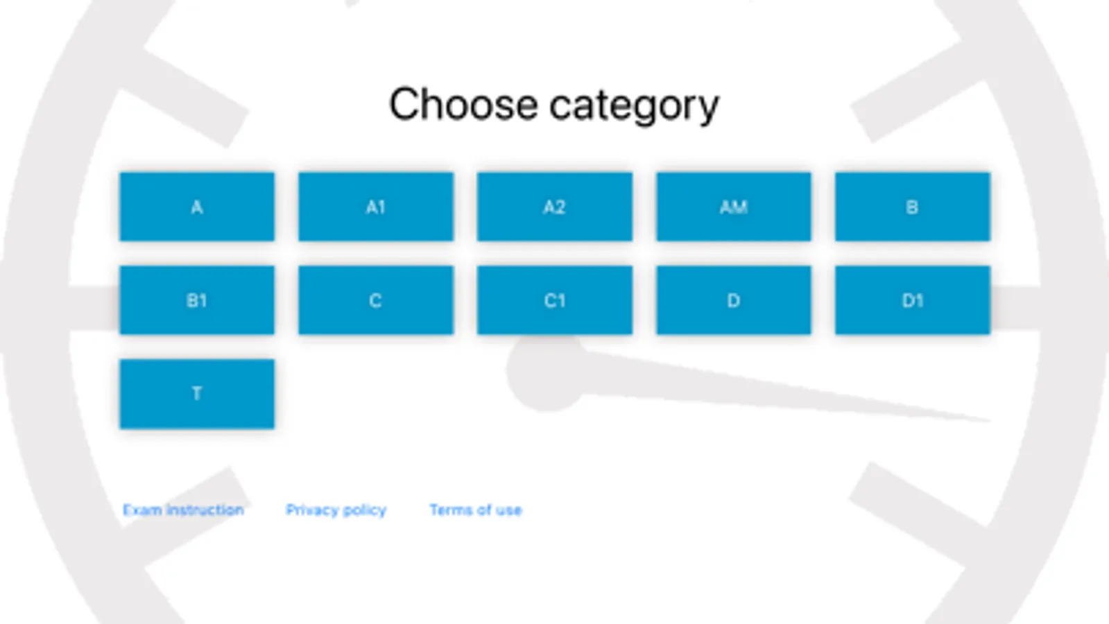 You can choose any driving licence category : A, A1, A2, AM, B , B1, C, C1, D, D1, T.