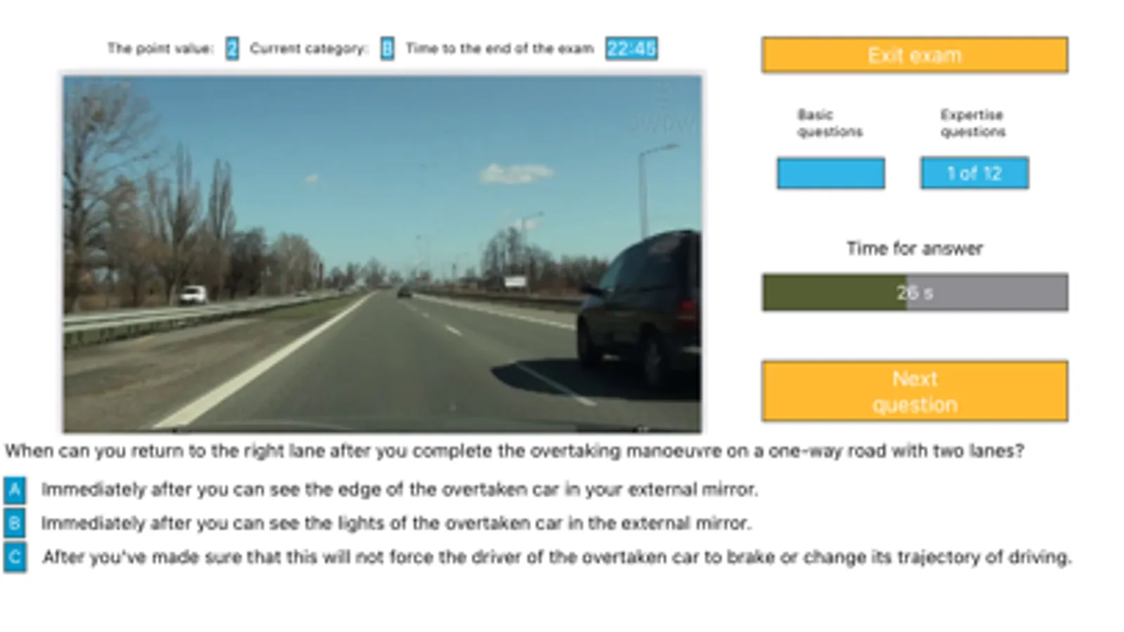 - Exam with up-to-date official questions and official interface (official English version of Polish state exam).