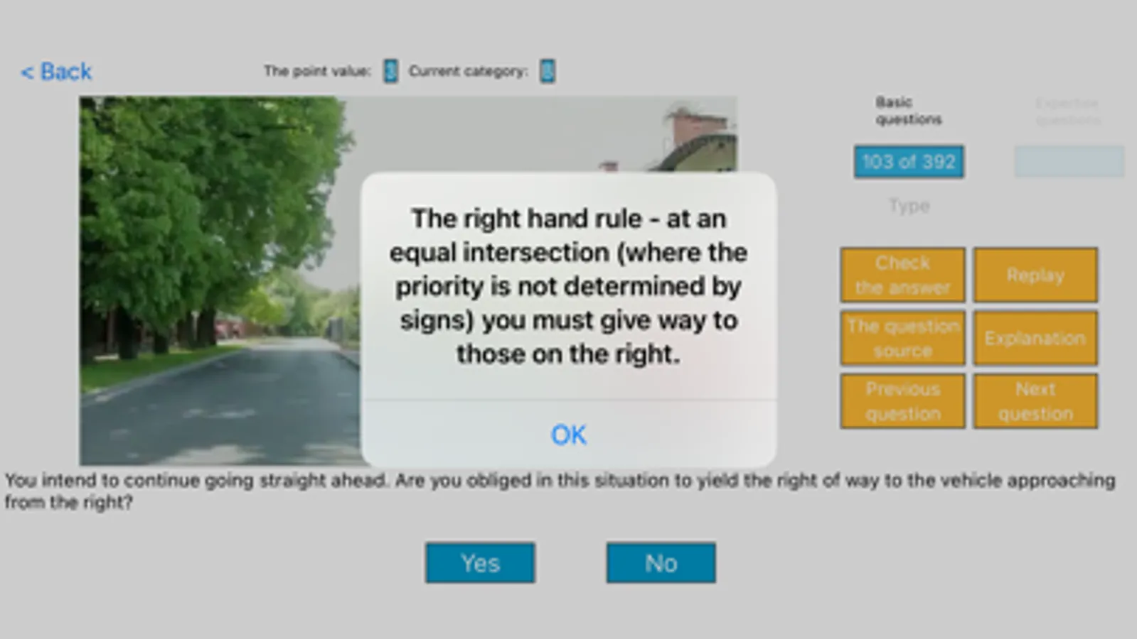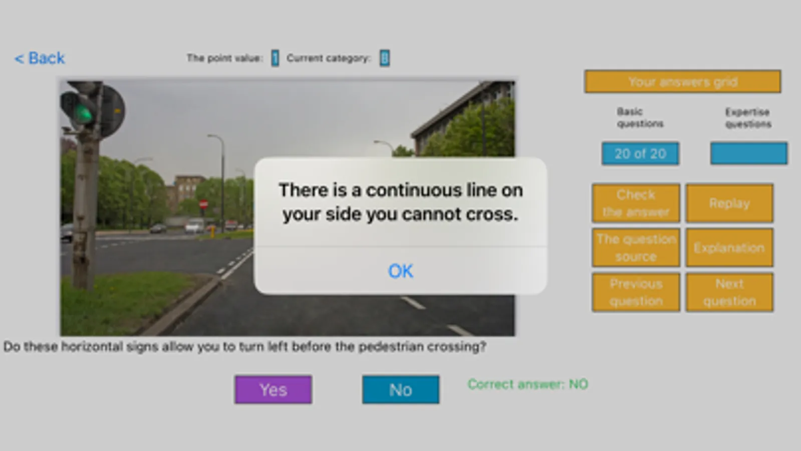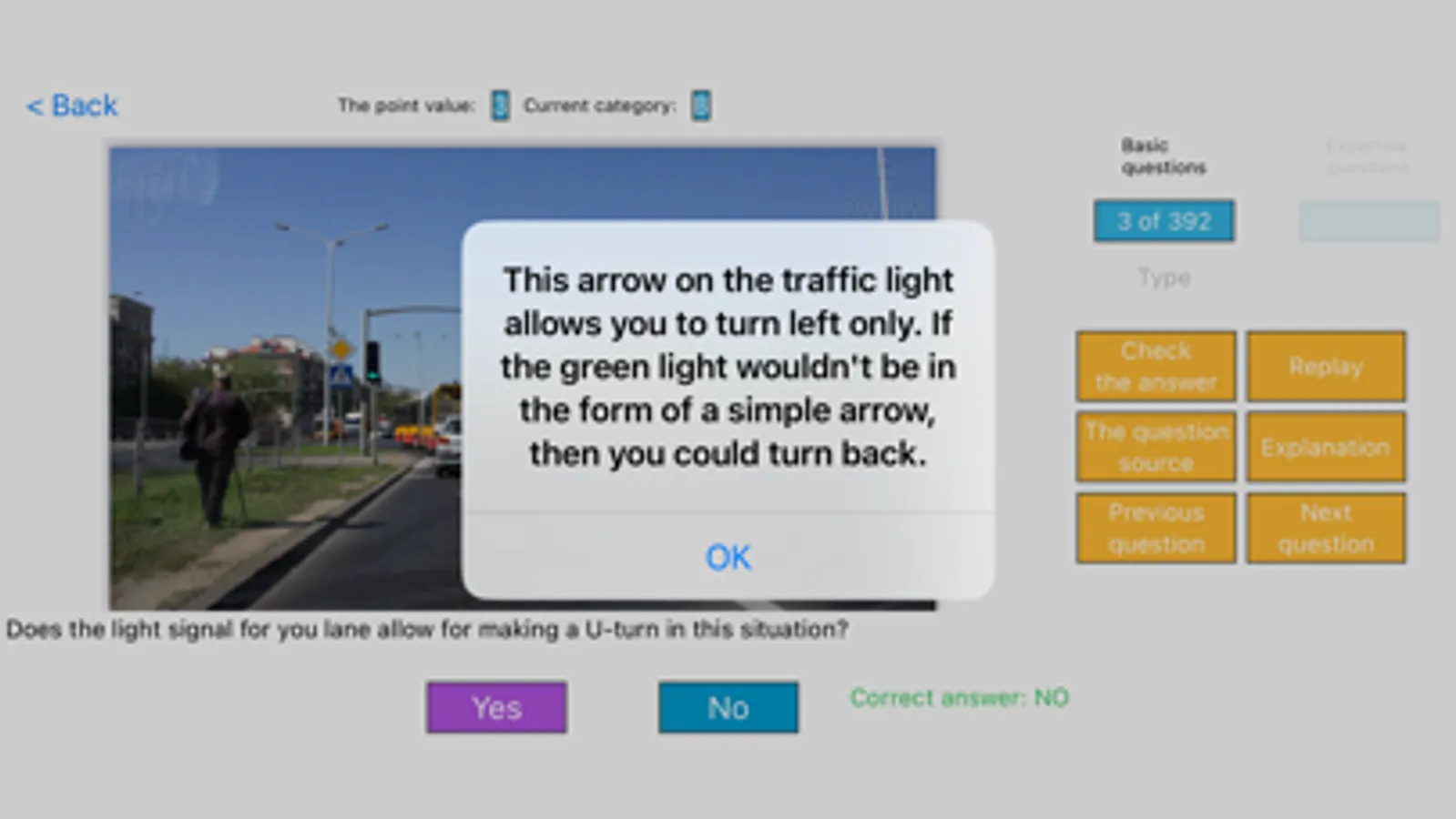 The tests include basic and special traffic questions. There is an instruction for the state exam in the app. There are also legal bases/sources and explanations in the Learning and Your Answers sections.