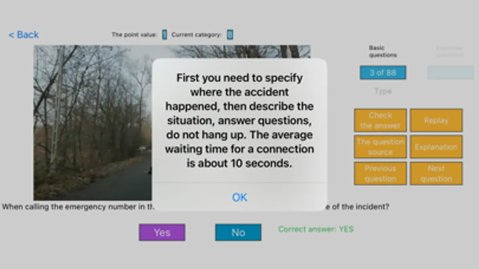 The application requires internet access. Questions and answers are up to date.