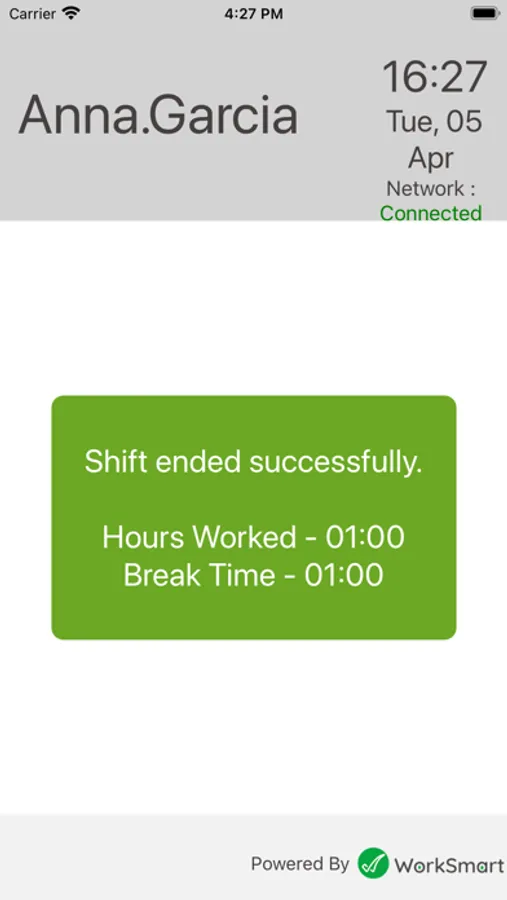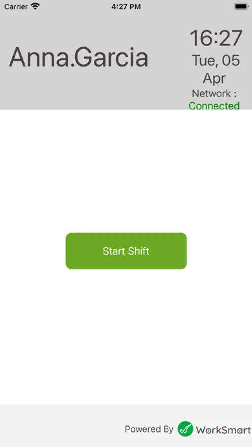 Once the shift start time has been recorded, employees can either end their shift or they can log their break.