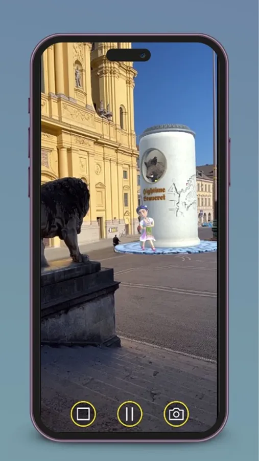 Never used an AR app before? Get started now with Hightime and you’ll love the experience of transforming the world around you. Hightime makes it really easy to do. There are full visual and verbal instructions on how to place the AR objects in the environment but no more detail than you need. You can just blend out any superfluous instructions. We have built in great flexibility in positioning the 3D AR objects. You can locate them closer or further away from you, elevate, rotate, and scale them to get exactly the view you want and create your masterpiece. You can adjust the position of the AR objects at any time. And the camera function lets you easily take and share great pictures of the parade and figures against the city background. So download Hightime now, grab the essence of Munich in the palm of your hand, and join the party.