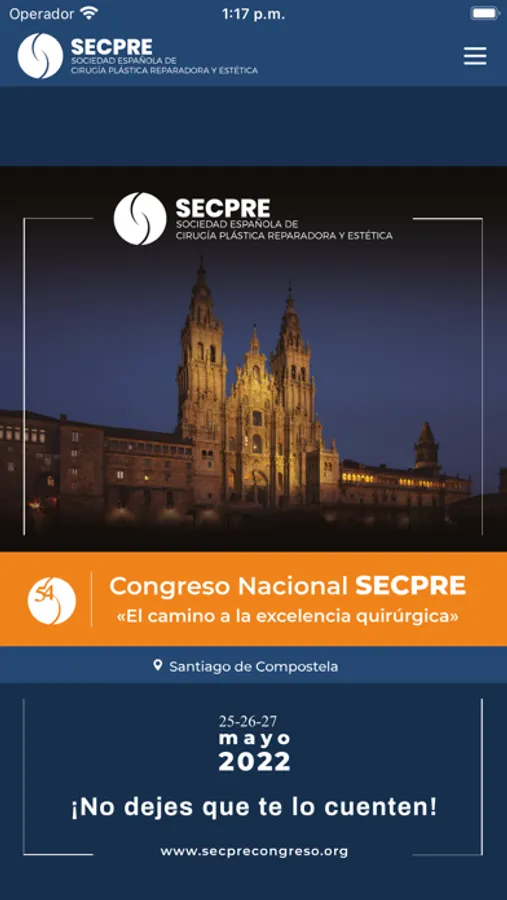 App oficial del 54º Congreso Nacional SECPRE que tendrá como Sede el Palacio de Congresos y Exposiciones de Galicia, en Santiago de Compostela los días 25, 26 y 27 de Mayo de 2022 bajo el lema "El Camino a la excelencia quirúrgica".
