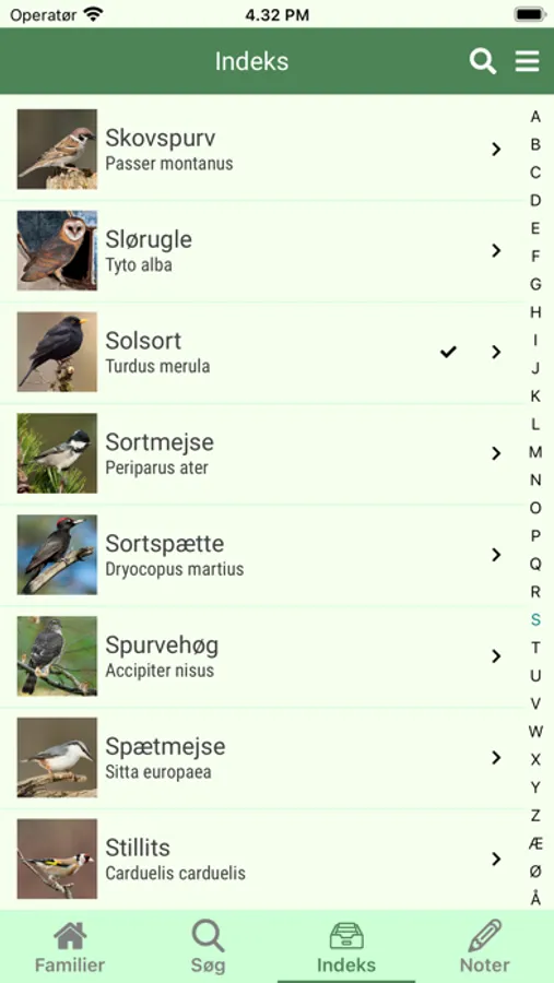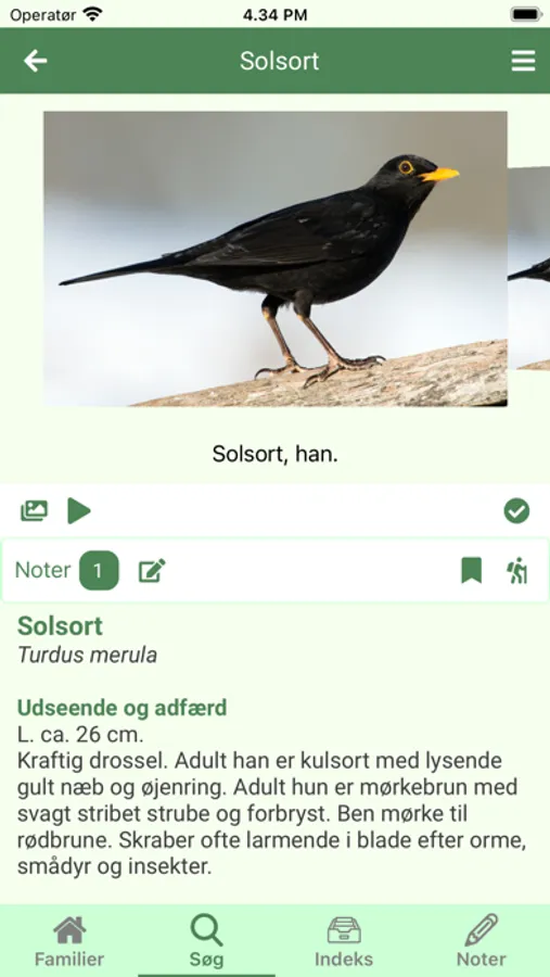 Beskrivelsen af fuglen giver dig viden om; udseende, adfærd, stemmer, forekomst, udbredelse og træk.