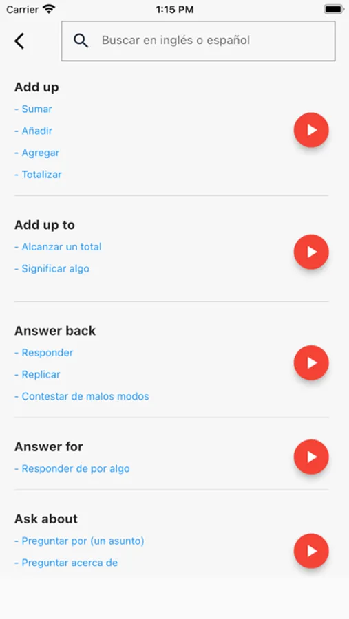 Podrás leer y escuchar la pronunciación de cada verbo por cada conjugación así como identificar si es verbo regular o irregular.