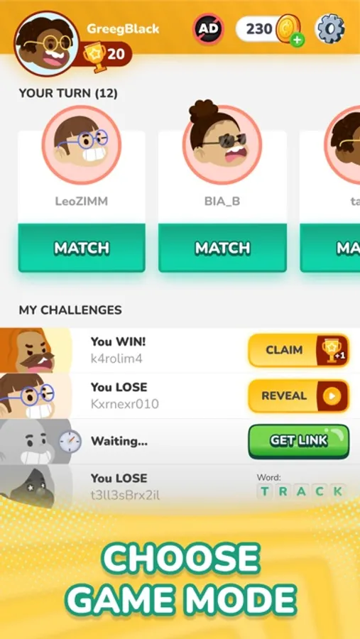 If you are a person that likes challenges, Word Pop allows you to invite your friends to play with you. Beyond this challenge mode you can also play random matches mode with other Word Pop players. But if you just want to train and have fun by yourself you can choose single player mode.