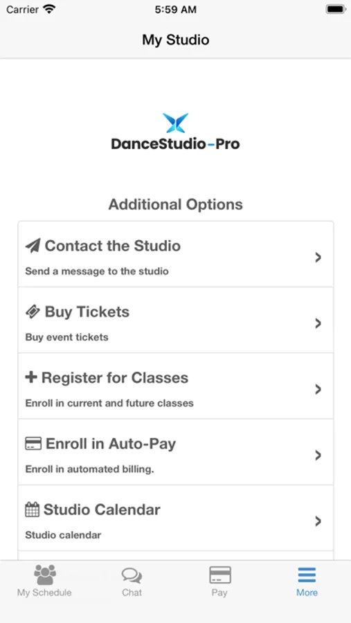 Access your studio's Customer Portal with an easy-to-use app! Powered by DanceStudio-Pro, this app gives you push notifications, so you don't miss a thing. Depending on your studio's enabled settings, you can: