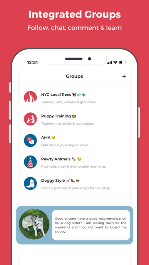 Pawz wants to meet your dog… not you. Build a profile for your dog, swipe, match, chat, and go play! Our integrated groups allows you to follow, like, comment, and post on a variety of dog-related topics – everything from recommendations to your dog’s outfit of the day. Our mission is to keep you smiling and your dog’s tail wagging, and together we will impact and evolve the way communities are built one pawprint at a time.