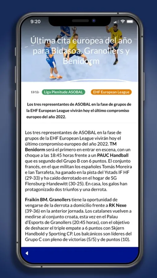 ¡Descubre la mejor forma de estar al día con la Liga Plenitude ASOBAL! Nuestra app te ofrece toda la información que necesitas sobre los equipos y jugadores, incluyendo resúmenes de la jornada, clasificación en tiempo real y estadísticas detalladas de cada partido. Ya no tendrás que buscar en diferentes lugares para tener toda la información en un solo lugar. Sigue con detalle a tu equipo favorito ¡Descarga nuestra app hoy mismo y sigue la Liga Plenitude ASOBAL como nunca antes!