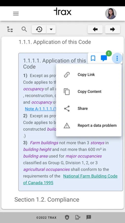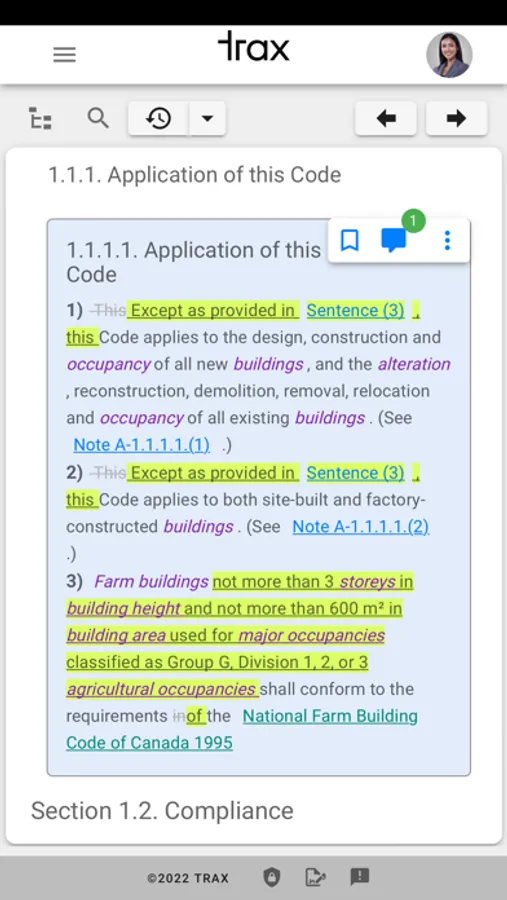 Trax Codes brings together the Ontario Building Code, Volume 1 and Volume 2, with the National Building, Fire, Plumbing, and Energy Codes of Canada, and much more. Trax Codes has the largest collection of up-to-date regulatory information in Canada for the construction industry. Helping you untangle complex compliance requirements using AI-enriched search, navigation, project management, and automation tools for construction projects of all sizes.