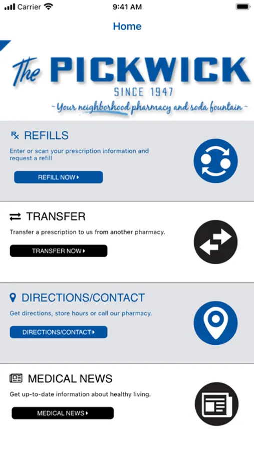 The Pickwick Pharmacy makes refilling your prescriptions convenient and quick with the use of this app on your device.