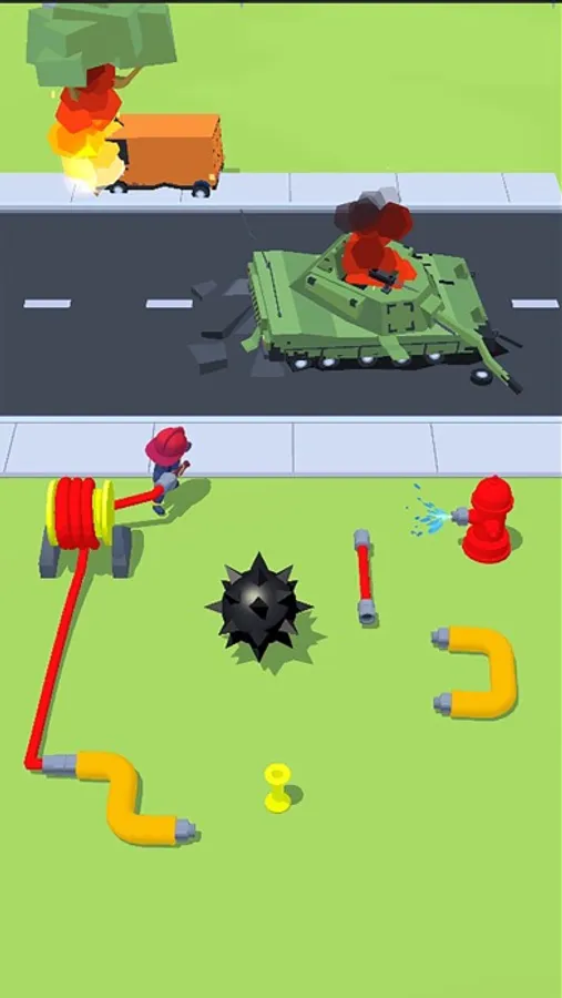 Fun puzzle game where your objective is Helping the firefighter by guiding water to his hose.