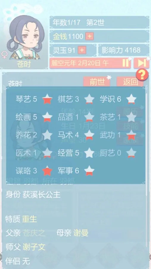 您这次将扮演的是无数次重生循环于十三到三十岁这段时间的青鸾皇朝长公主,体验身为一个身份尊贵却没有实权的长公主如何在每一世的人生中逐渐窥得掌控权力的方法,并利用重生的先知介入他人的人生,随心意改变他们的命运
