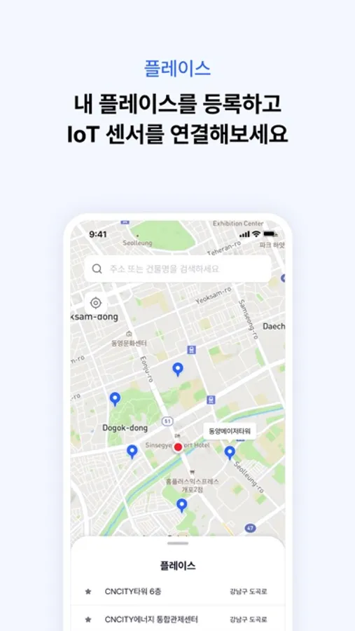 내 플레이스를 등록하고 IoT 센서를 연결할 수 있습니다.