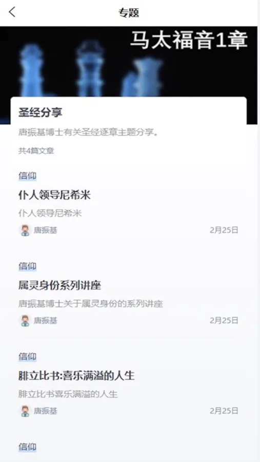 心靈之旅為您提供唐振基博士授權的關於商業和信仰類的課程,希望能更好的幫助您來瞭解信仰和領導力方面的知識,同時我們也希望這個平臺能够造就更多人的生命,結合我們為您提供的星球社區功能,大家可以在裡面進行互動交流。 彼此鼓勵,生命影響生命