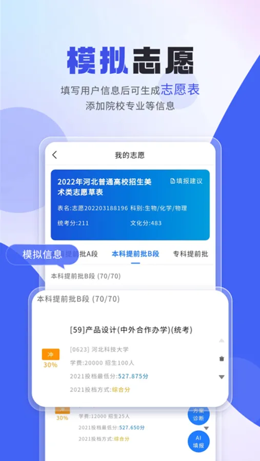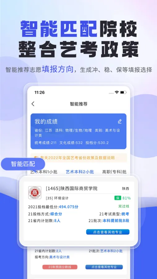 艺考志愿智能报考软件,专业的艺术生高考志愿填报美院模拟系统