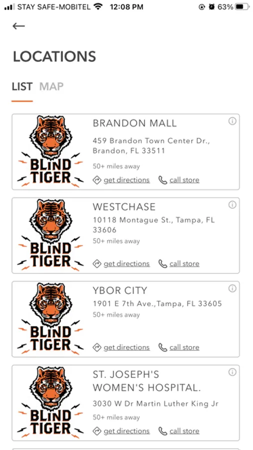 App for the Blind Tiger Coffee Roasters based out of Tampa Bay, Florida