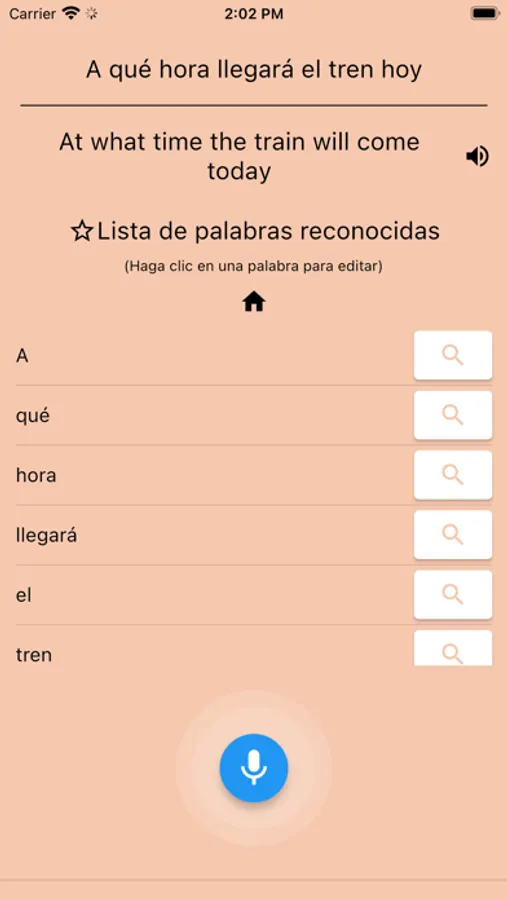 AI Diccionario de Inglés reconocerá tanto el habla en español como en inglés y lo mostrará en la pantalla.