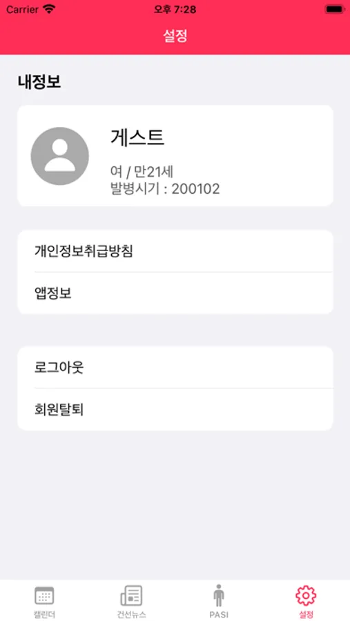본 앱에서 제공하는 정보를 피부질환의 진단 또는 치료, 약물 똔느 기타 치료 저방, 의료 제공자가 권장하는