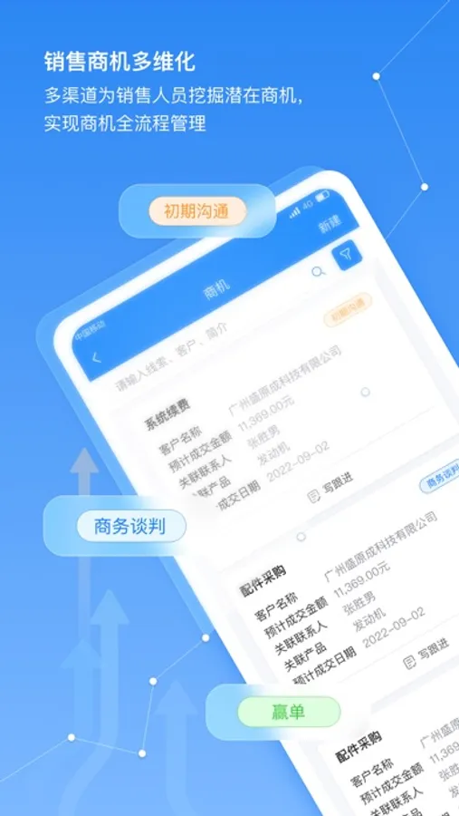 具备线索、商机、报价、合同、跟进等功能,为销售线索转化、商机捕获、客户关系提供全方位功能支持;