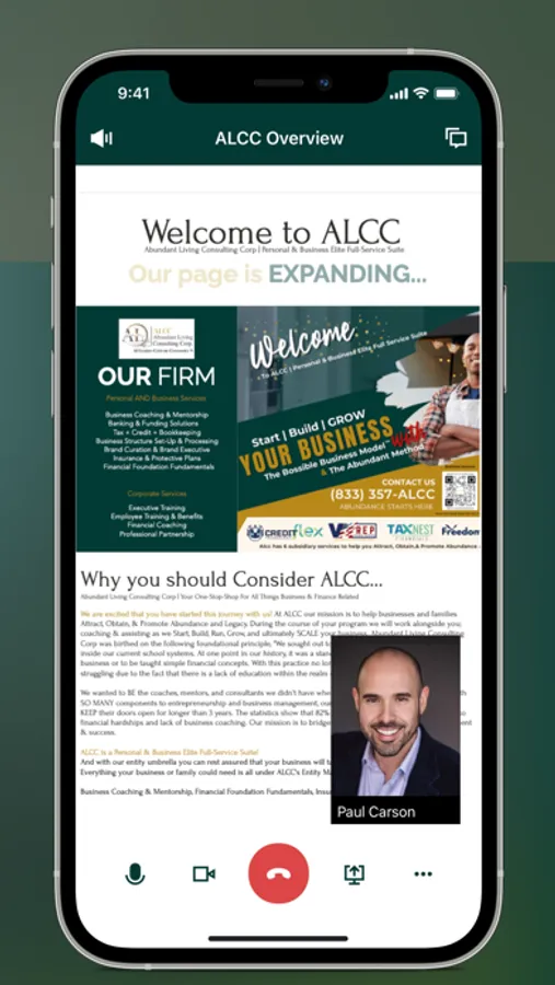ALCC's mobile app, gives clients access to subsidiary services and an easy to use collaboration dashboard. With Abundant Living Consulting coaching is made easy. Use our interactive portal to schedule face-to-face virtual meetings, instant message, e-sign contracts, and track your programs progress all in one place. Abundance starts here, with ALCC.