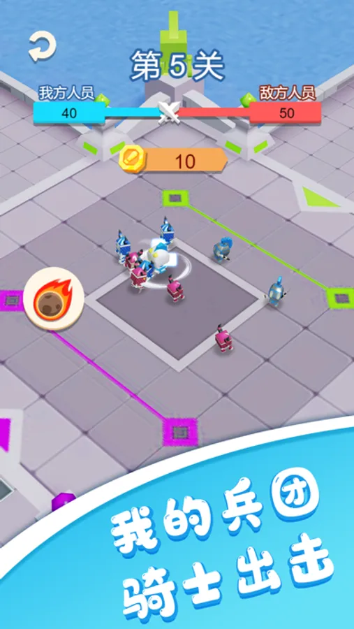 我的兵团是超好玩的策略对战游戏,玩家在游戏中可以不断开拓土地,增加士兵数量和升级士兵战力。然后与敌方士兵展开大作战。
