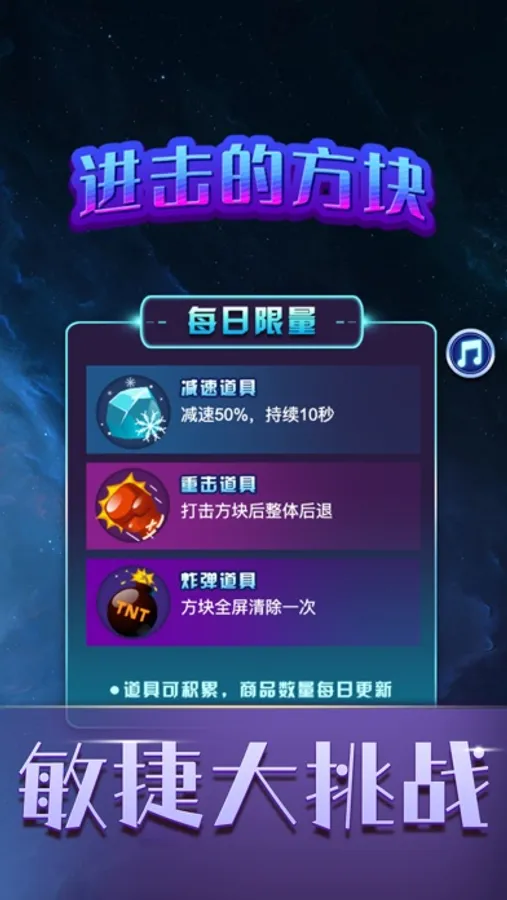 “进击的方块”是一款消除小游戏,在游戏中你需要眼疾手快的击出方块,填满整行将方块全部消除。进击的方块落下,看你能挑战多久。