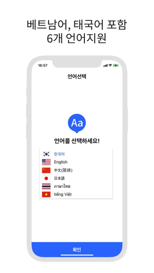 - 6개 언어로 서비스를 제공합니다. [한국어, 영어, 중국어(간체), 일본어, 베트남어, 태국어)]