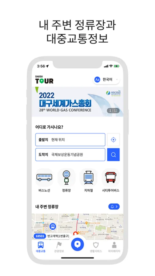 관광 정보와 버스 정보를 한곳에서 대구 여행은 대구 투어로!