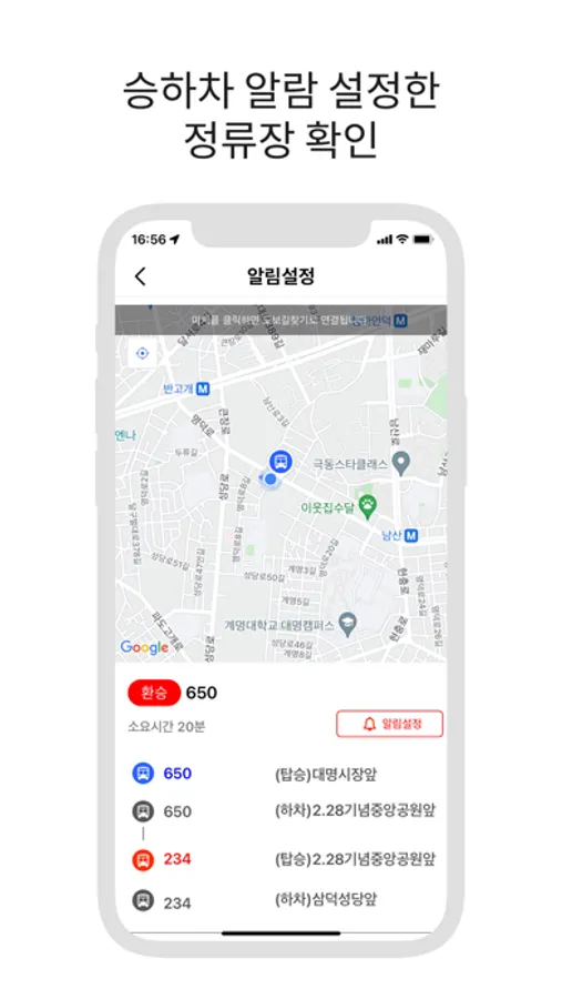 - 버스 정류장과 해당 버스의 노선을 확인할 수 있어요.