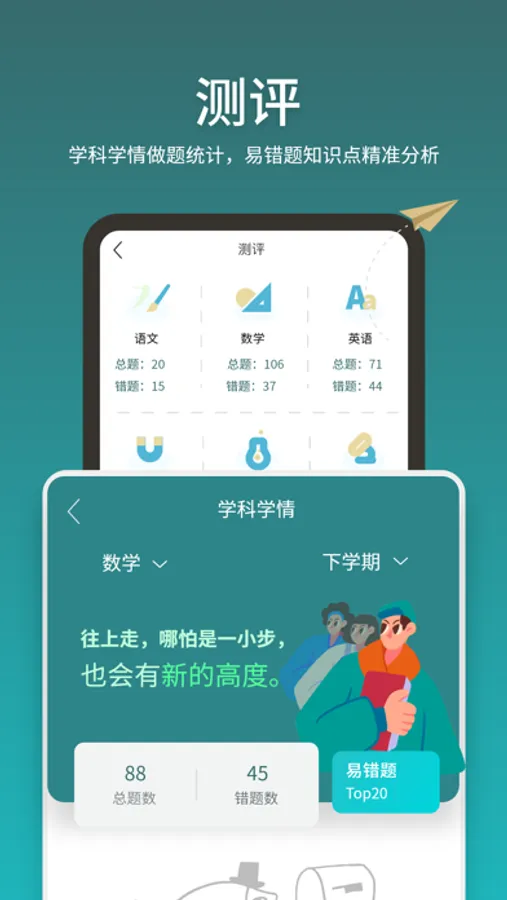 智慧作业学生端提供智慧便利的学情分析管理,让学生时刻掌握自己的学科学习情况,带来高效智能的学习体验。