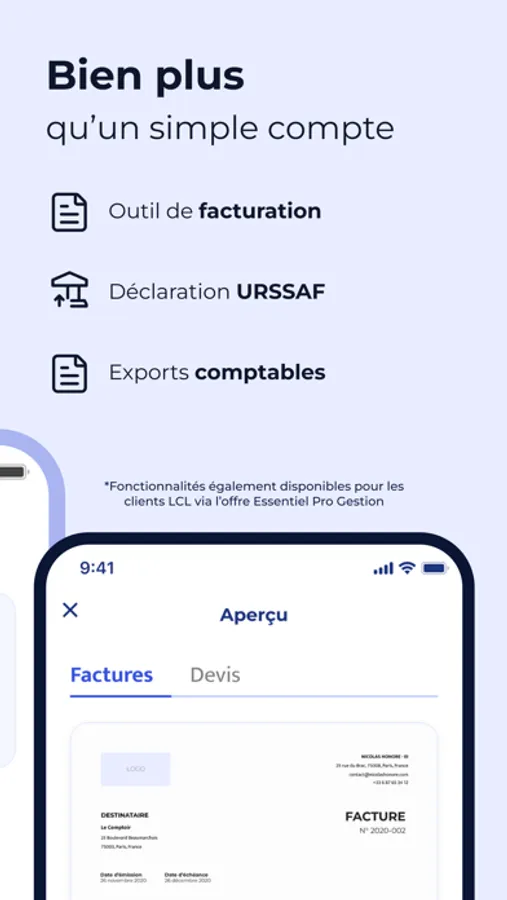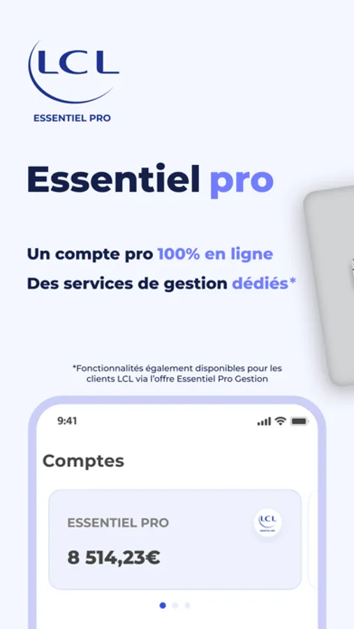 Vous avez déjà un compte professionnel au LCL ? Ces services de gestion sont également accessibles en sec, via l’offre Essentiel Pro Gestion. Consultez votre espace LCL Access ou rapprochez-vous de votre conseiller.