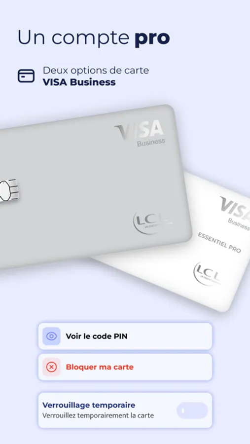 - Personnalisez votre carte business : code pin, blocage à distance, plafonds de paiement et retrait, etc.