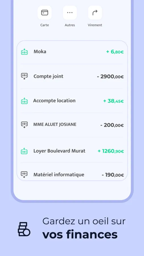 - Envoyez et recevez vos virements depuis des comptes internes ou externes
