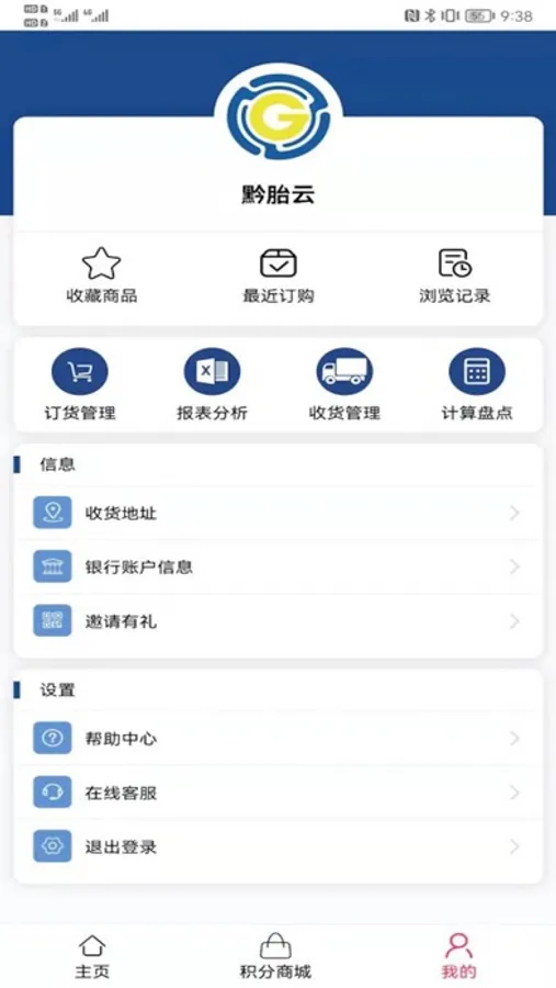 我的:收藏商品、最近订购、浏览记录、订货管理、报表分析、收货管理、计算盘点、信息、设置