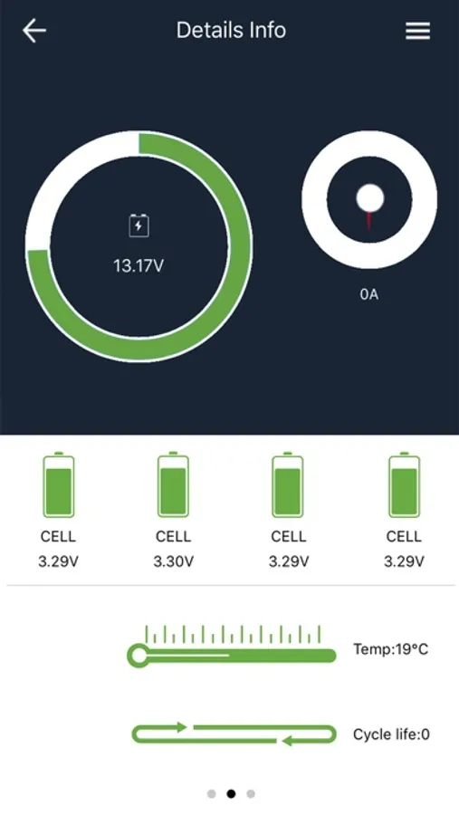 The HYESN Bluetooth battery monitoring App allows the user to connect the HSLB-100 Deep Cycle Battery to IOS mobile phones, tablets and other devices to check the real-time Battery Information including State of Charge, Voltage Level, incoming and outgoing Current levels, Battery Temperature, as well as providing individual Cell Voltages and Alerts for Battery Status.
