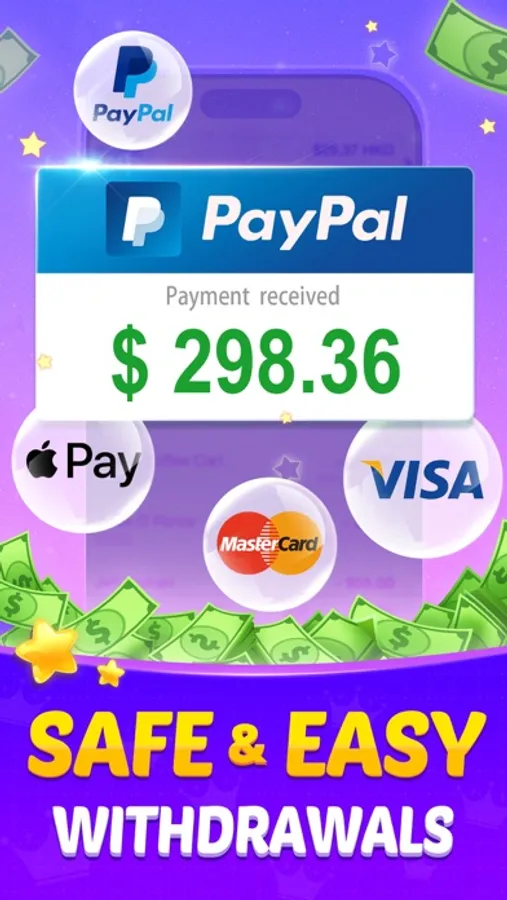 - Withdrawal via Paypal & Apple Pay 100% securely. Each tokens that can be redeemed. Make money without gambling.
