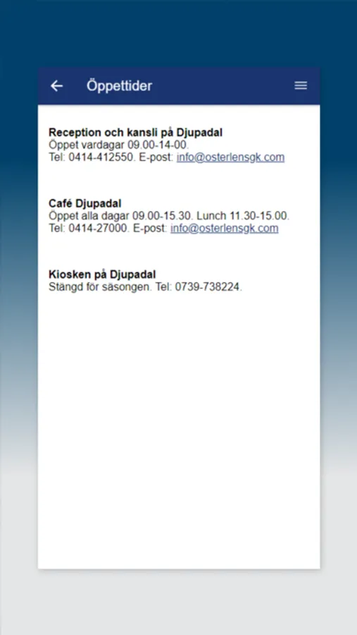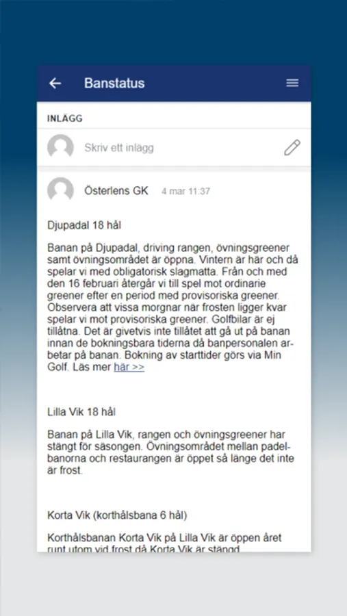 Med appen för Österlens GK kan du som medlem få tillgång till viktig information via pushnotiser. Du får löpande följa vad som händer på klubben via nyhetsflöden, boka tid för golf, läsa mer om våra banor, ta del av information från våra olika verksamheter och mycket mer.