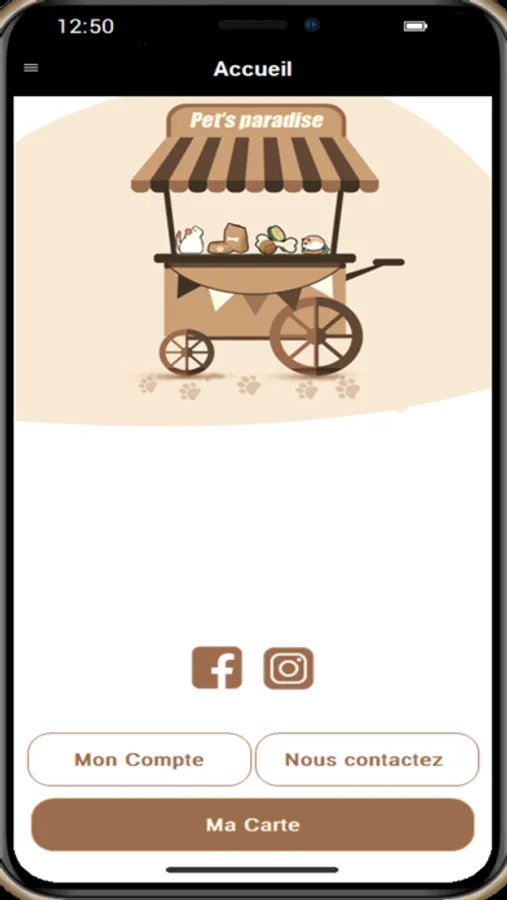 Cette application est destiné aux clients de la boutique Pet's Paradise afin de les permettre de consulter leurs carte de fidelité, ainsi que leurs processus de ventes sur la caisse dans la boutique, etc..